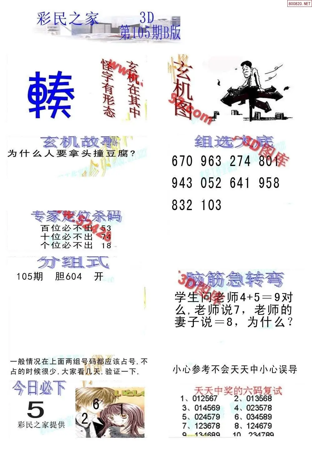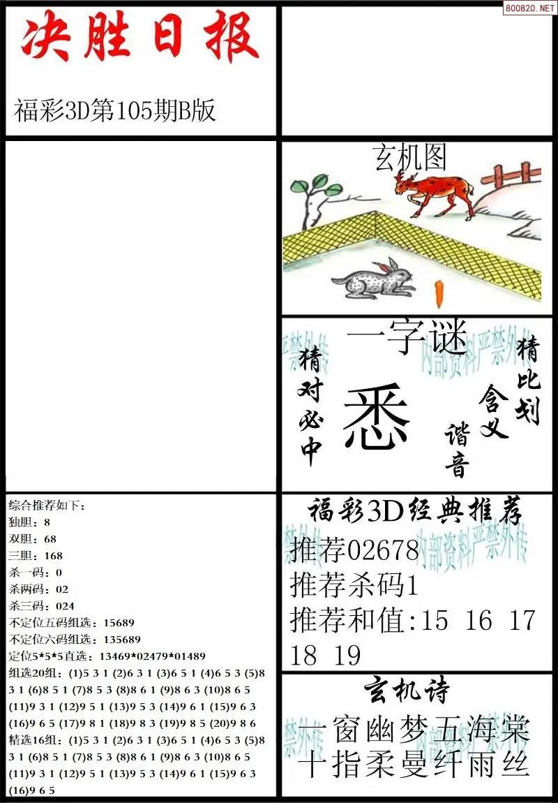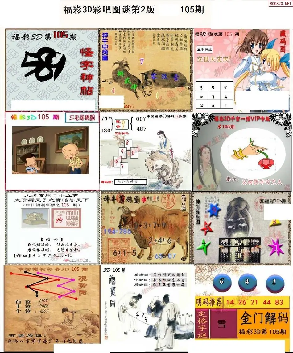 (3)2026105期3D预测总汇全图_福彩3d图谜字谜总汇