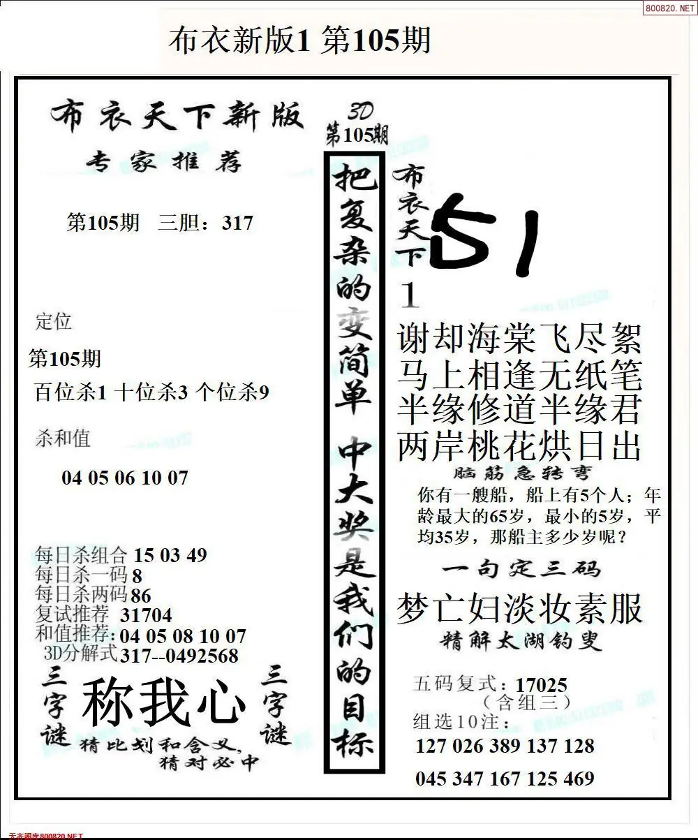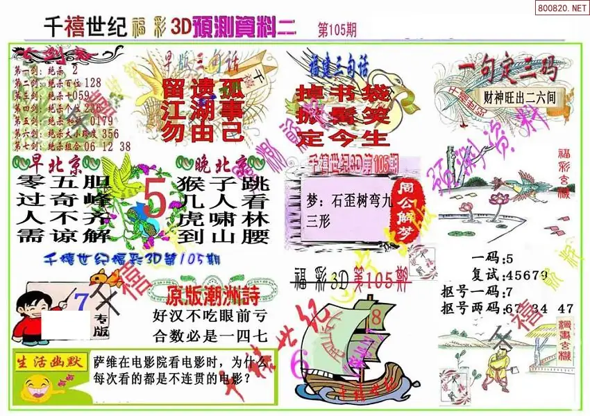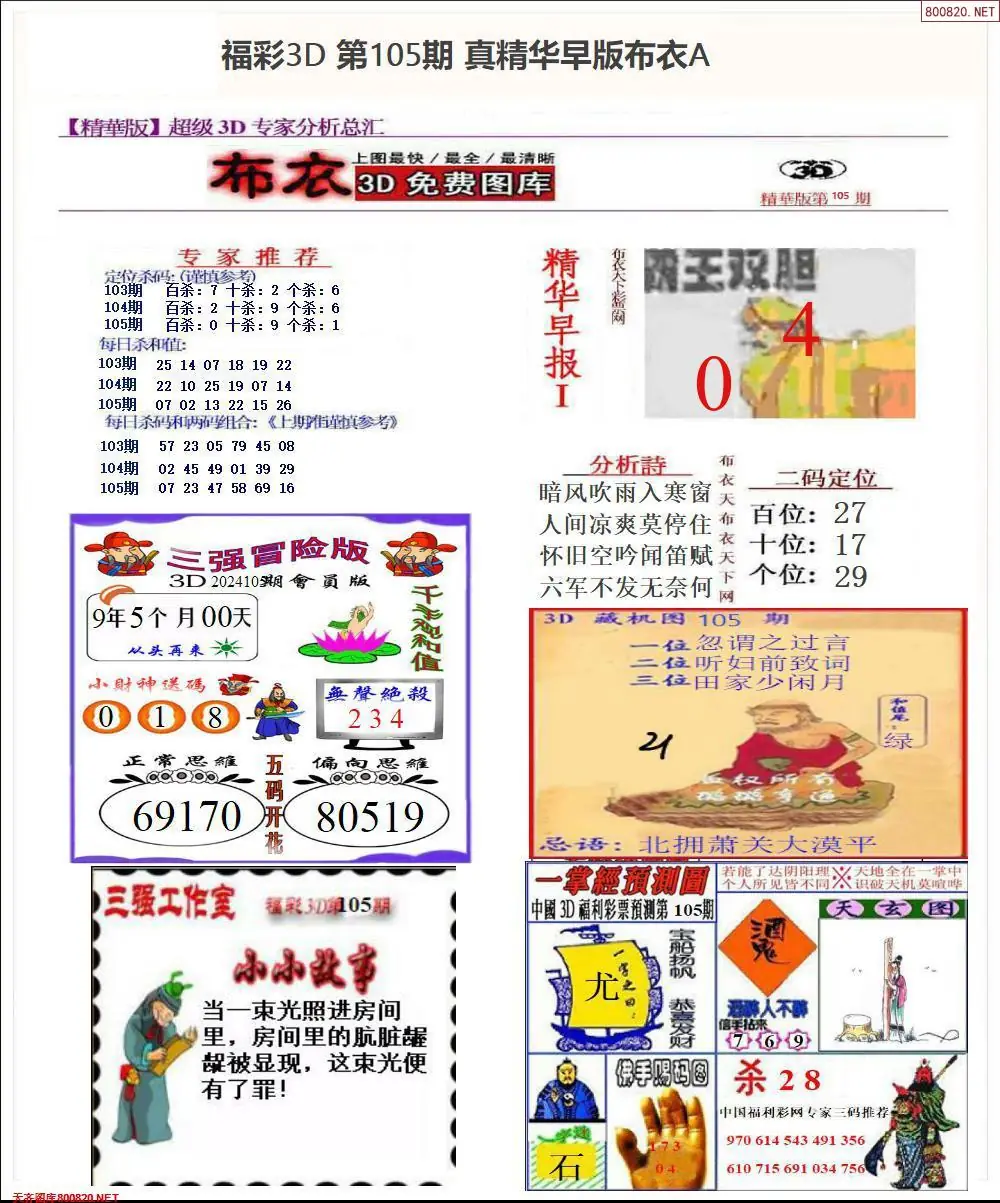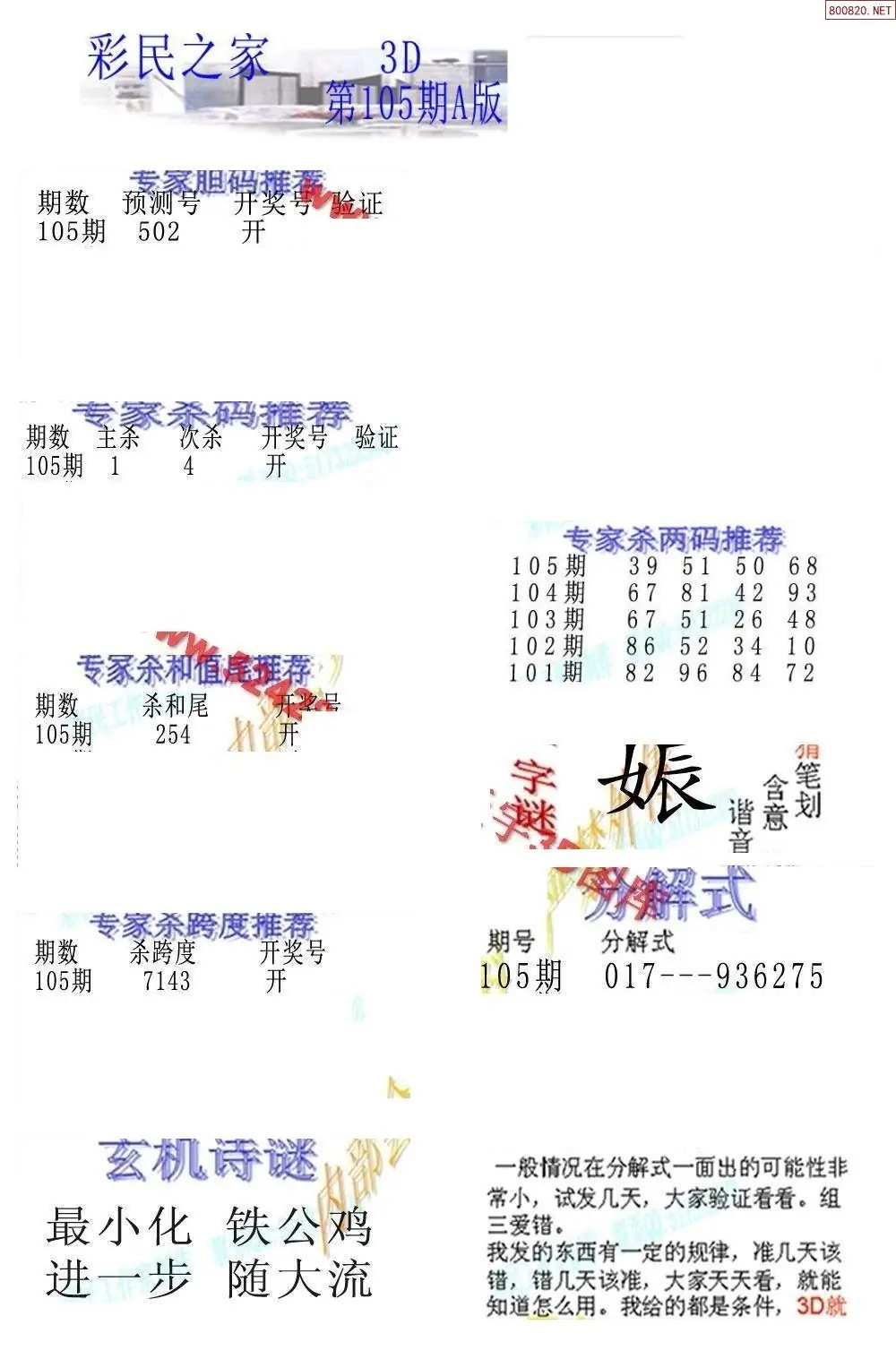 (3)2026105期3D预测总汇全图_福彩3d图谜字谜总汇