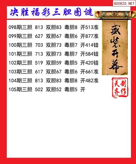 (3)2026105期3D预测总汇全图_福彩3d图谜字谜总汇