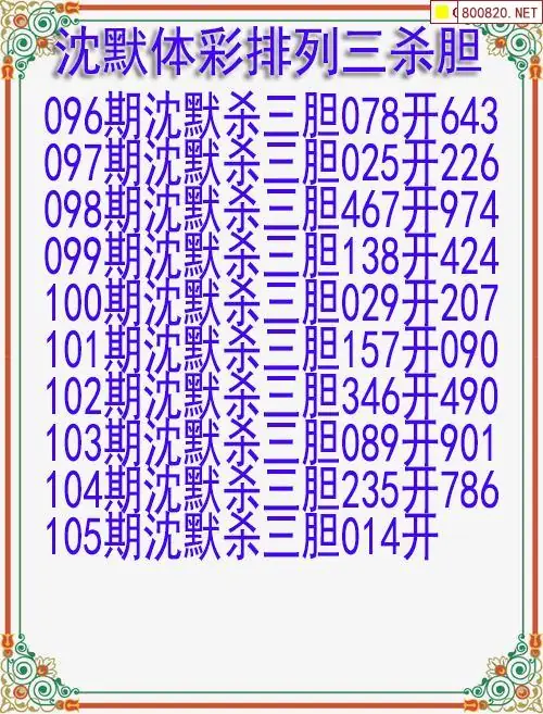 26年105期体彩排列三沈默杀胆图迷