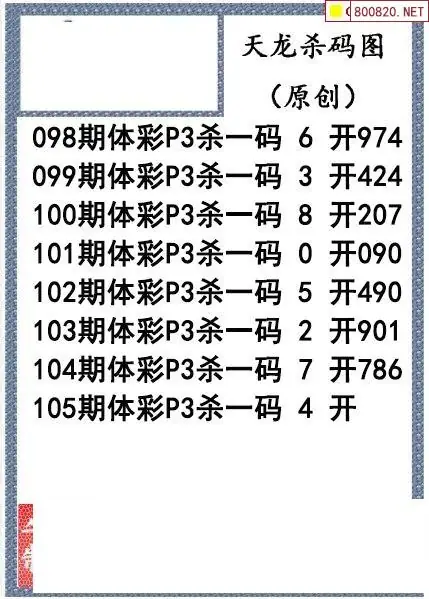 26年105期天龙体彩P3杀码图谜