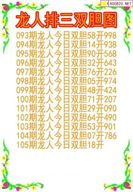 26105期龙人排列3双胆图