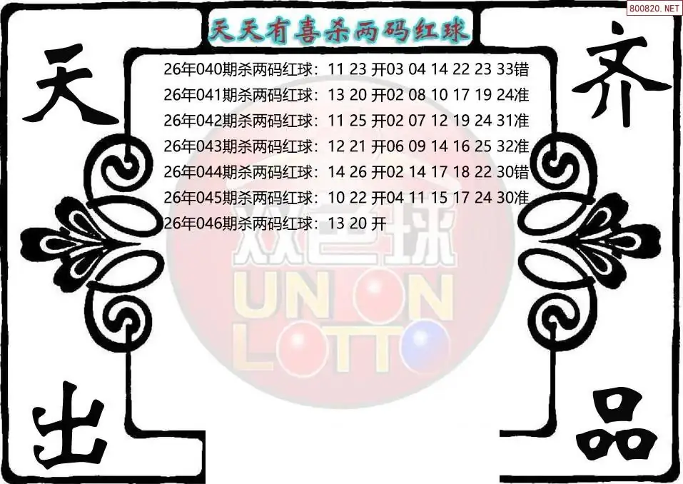 26年双色球046期天天有喜杀红图迷
