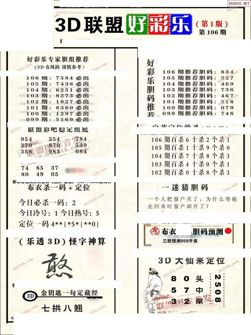 2026106期联盟好彩乐直通车1