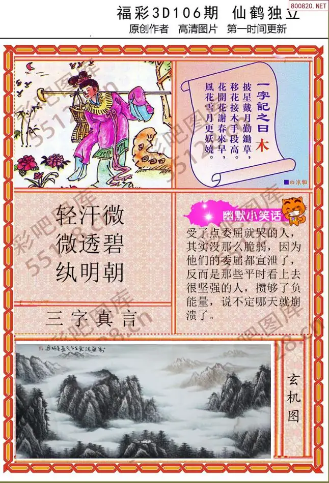 106期福彩天机壁怪字图