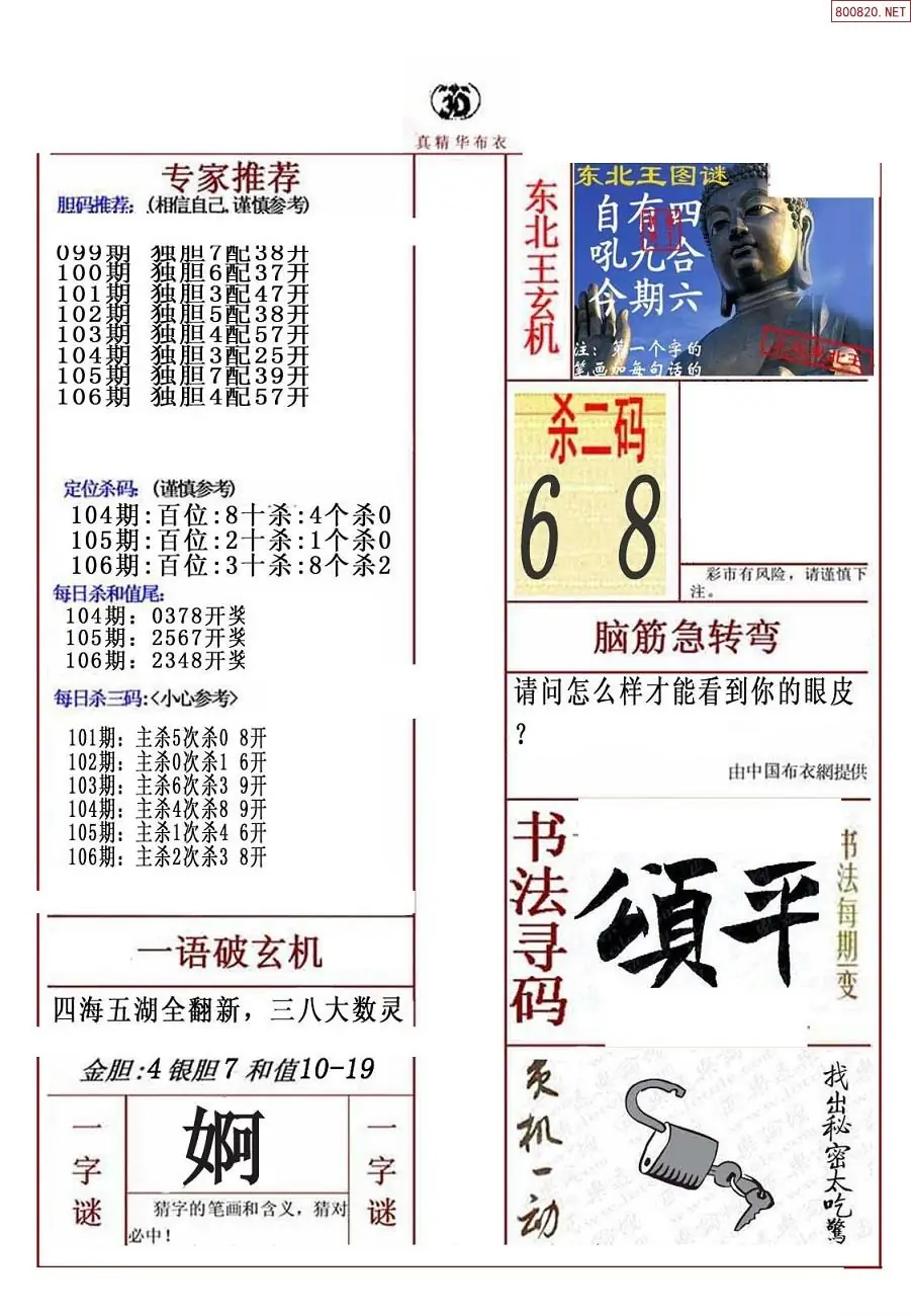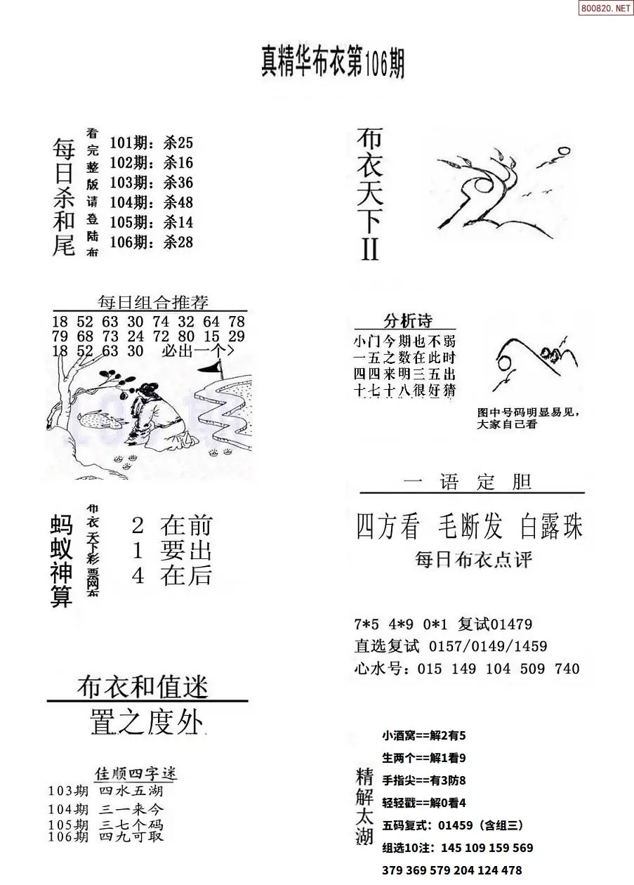 106期真版布衣神算专家推荐