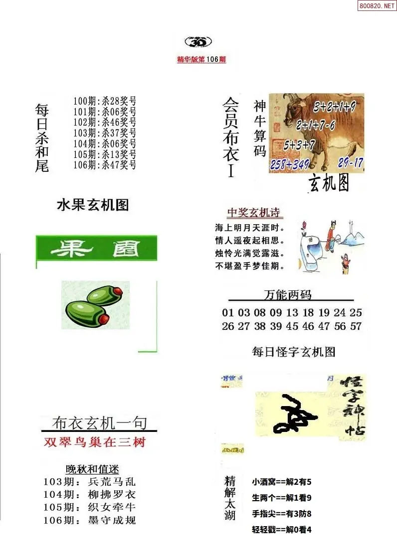 福彩106期3d真精华布衣+布衣早报(转载)