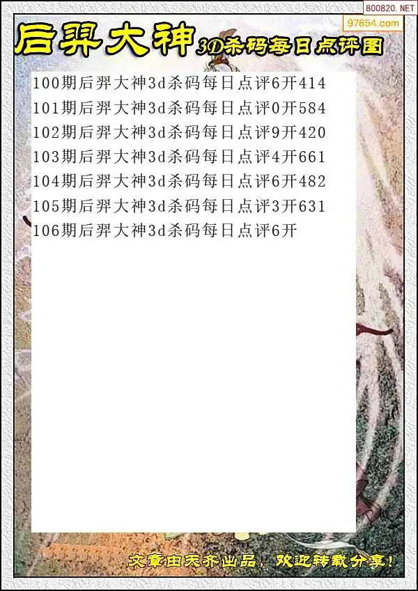 26106期5点原创+彩友3D胆杀码