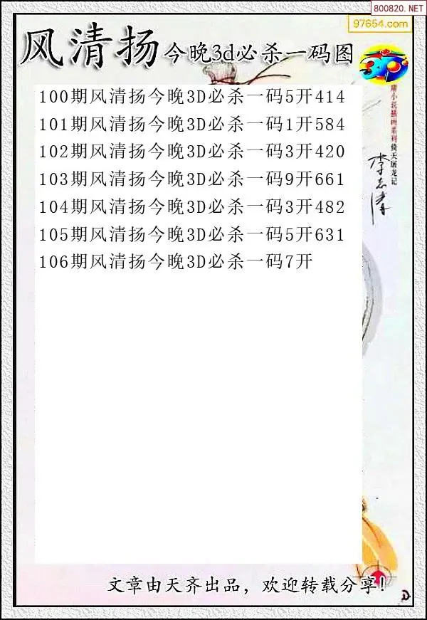 天齐网3d26年106期杀码图 杀:14