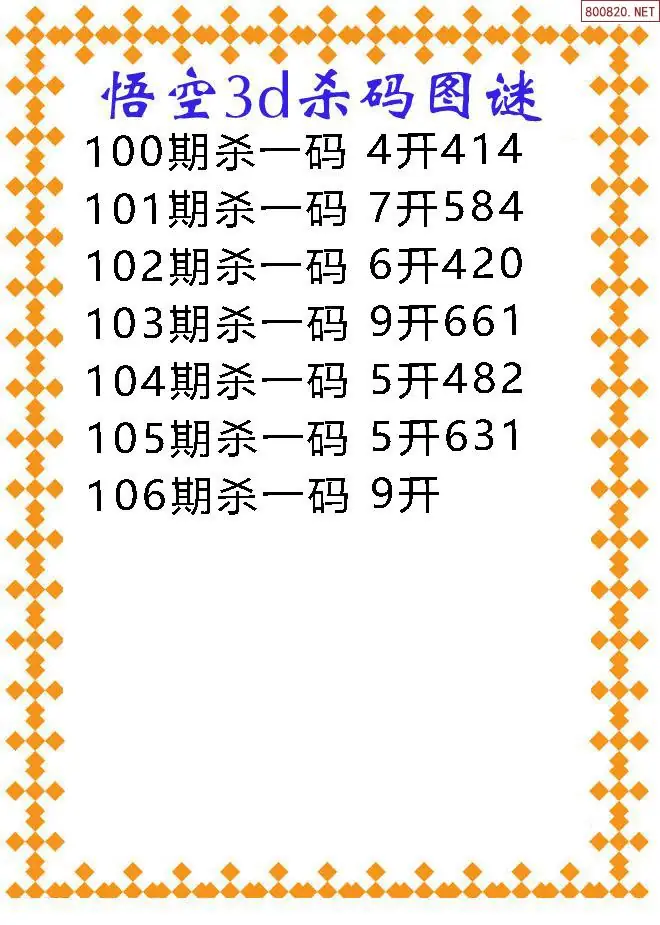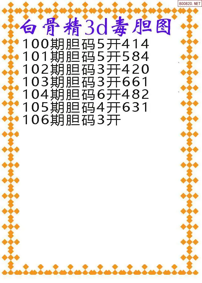 天齐网3d26年106期胆码图 胆:67