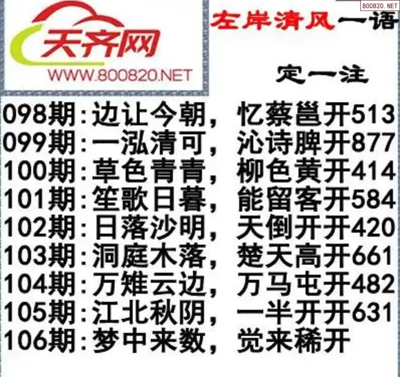 福彩3d左岸清风26年106期一语定一注