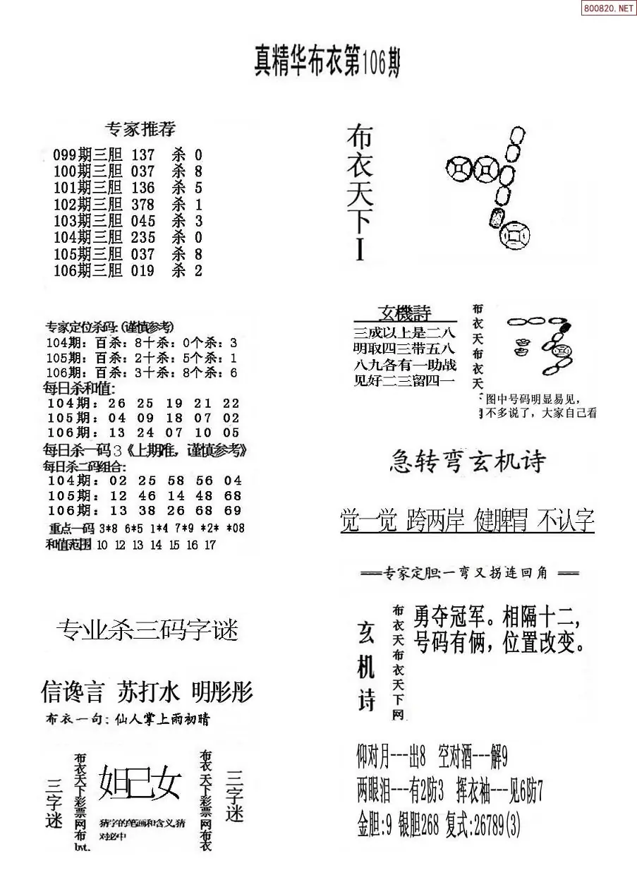 (2)26年106期本期3d图迷汇总_福彩3D图谜总汇图