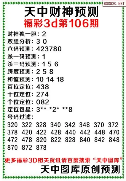 (3)2026106期3D预测总汇全图_福彩3d图谜字谜总汇