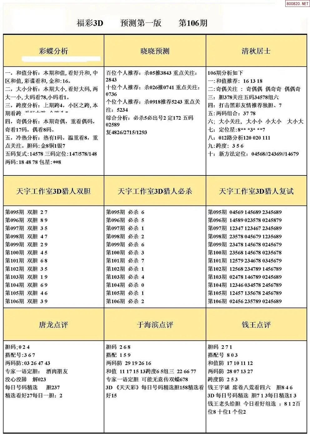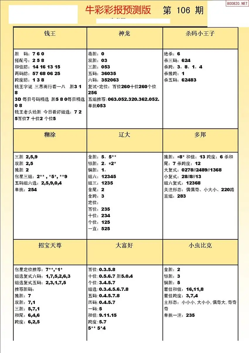 (8)26年106期今日3d各类彩报汇总