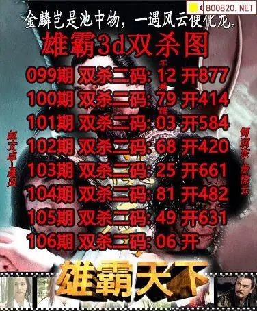 2026105期雄霸天下3D杀双码