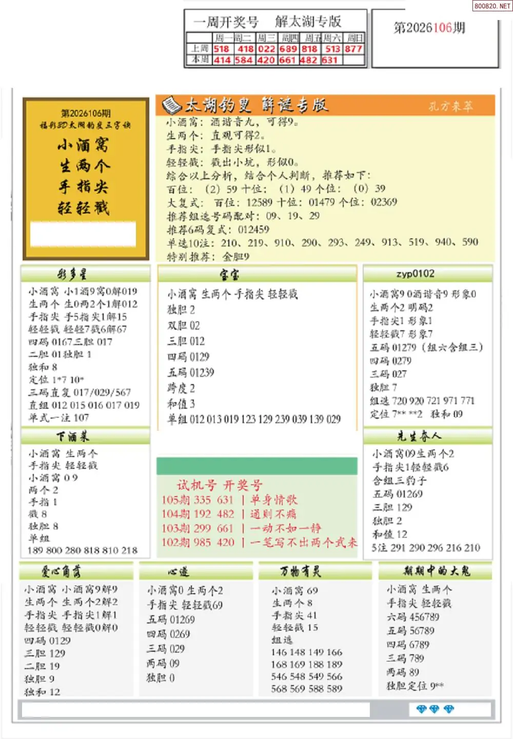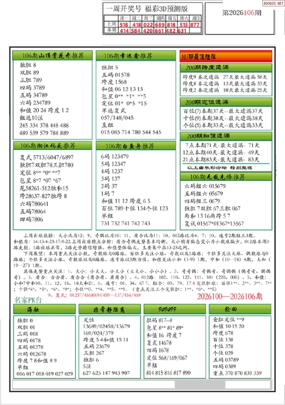 26年106期3D各板块资料整合汇总