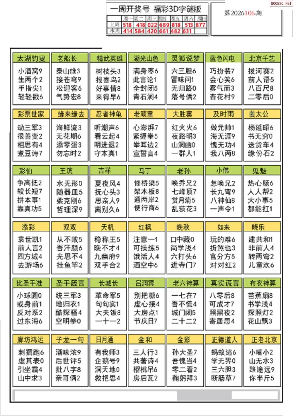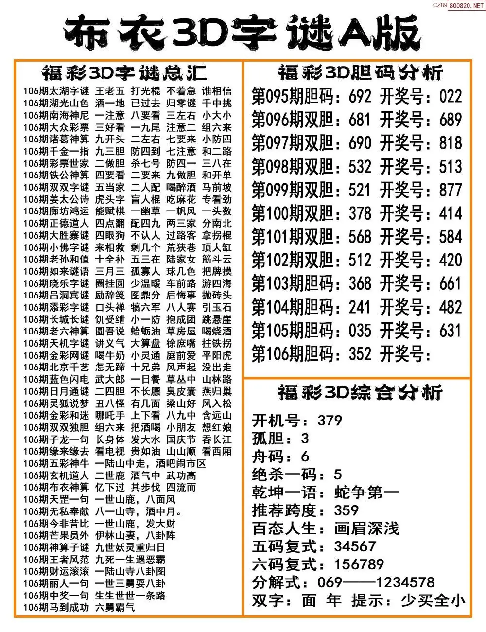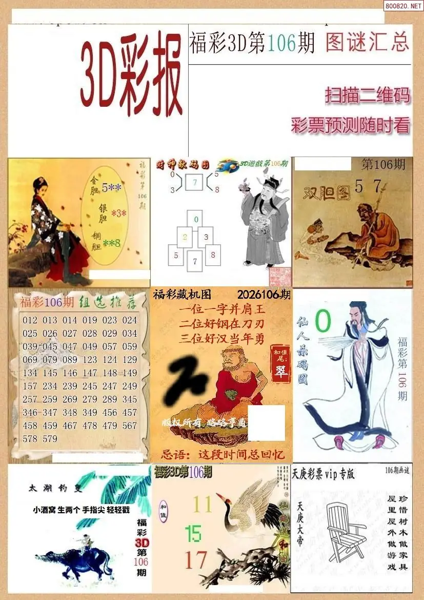 (3)2026106期3D预测总汇全图_福彩3d图谜字谜总汇