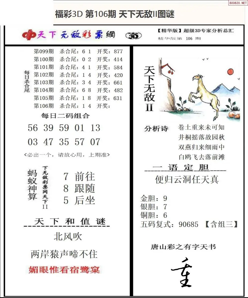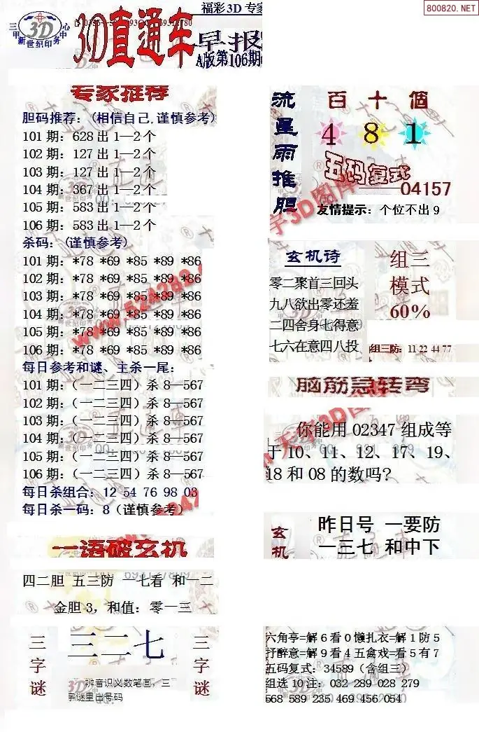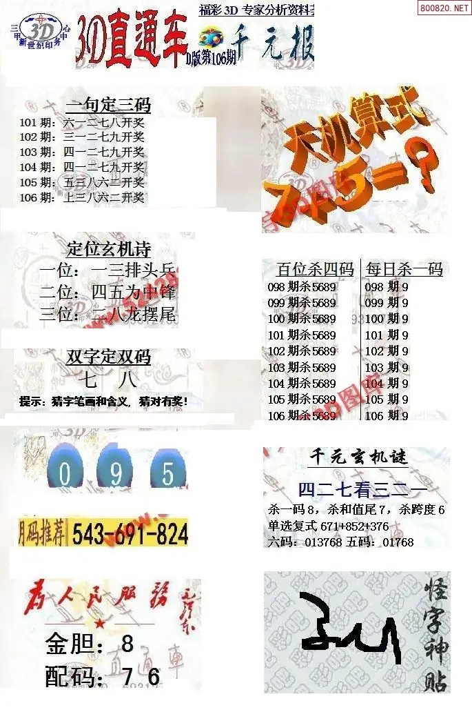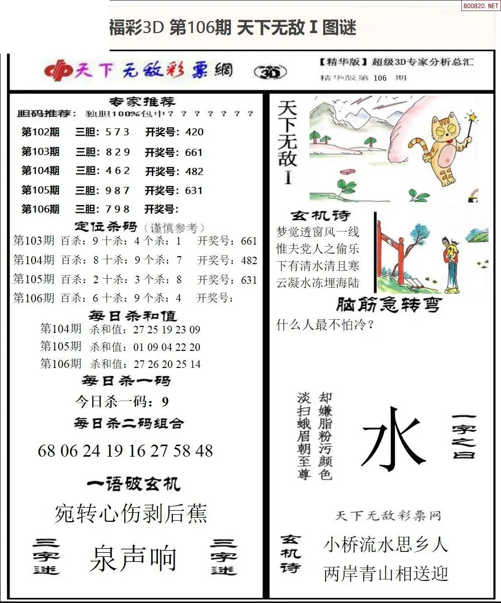 (3)2026106期3D预测总汇全图_福彩3d图谜字谜总汇