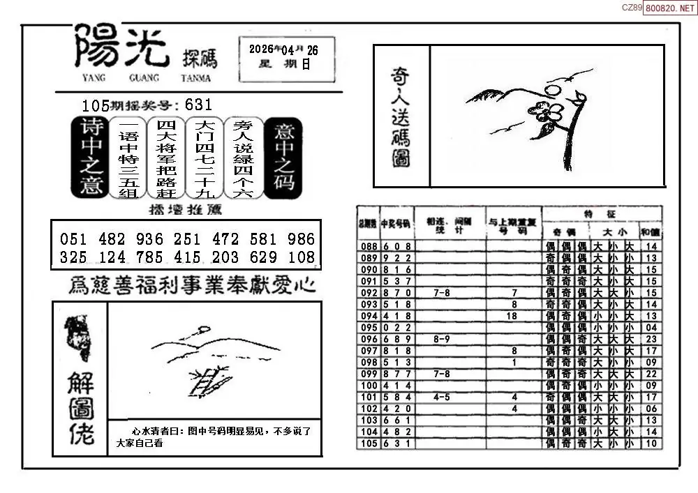 (2)26年105期本期3d图迷汇总_福彩3D图谜总汇图