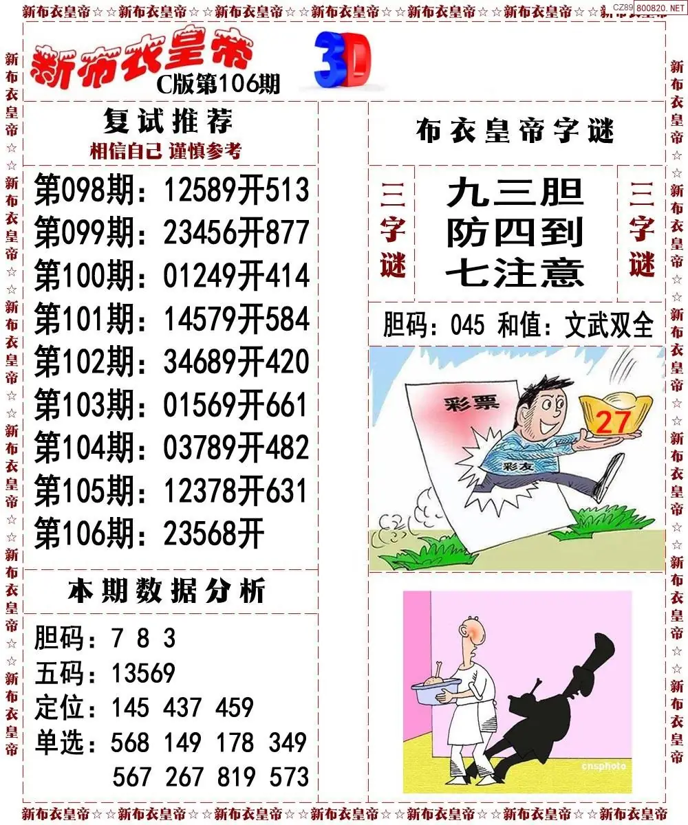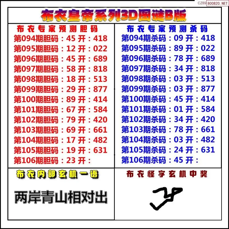 (3)2026105期3D预测总汇全图_福彩3d图谜字谜总汇