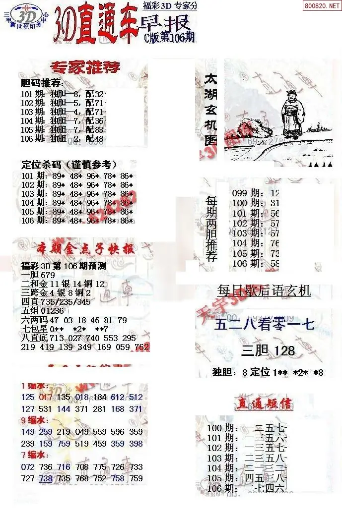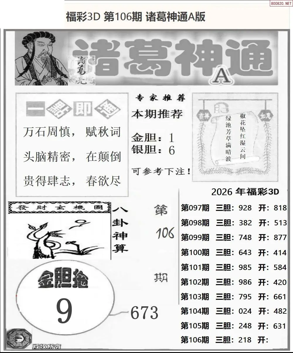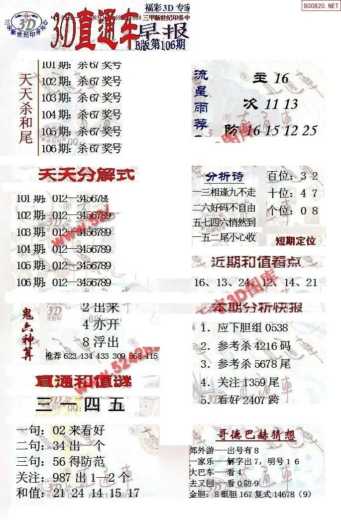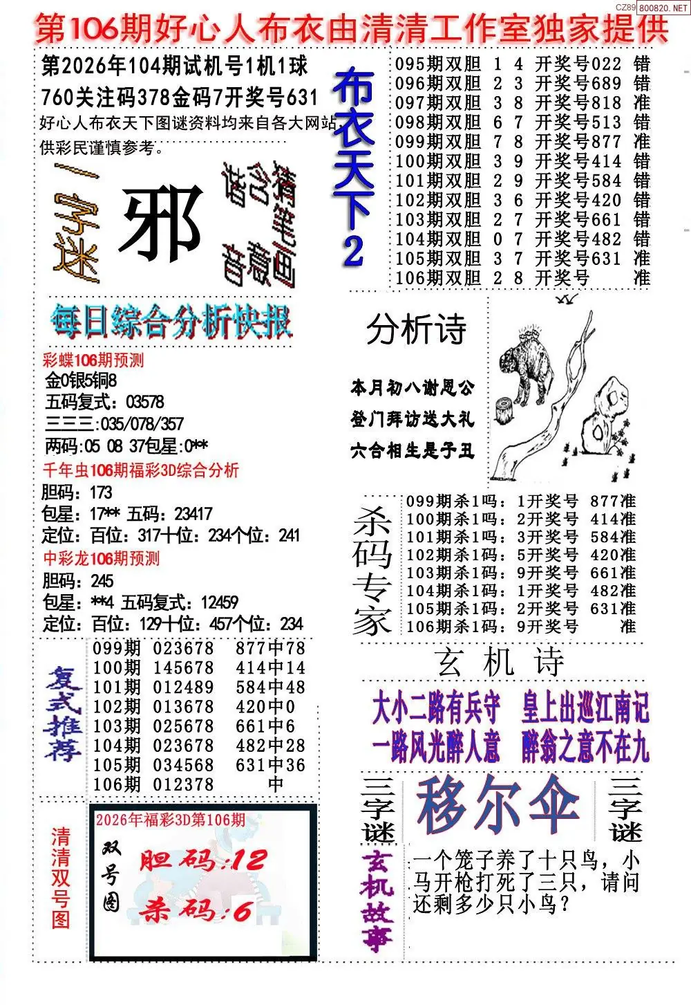 (2)26年106期本期3d图迷汇总_福彩3D图谜总汇图