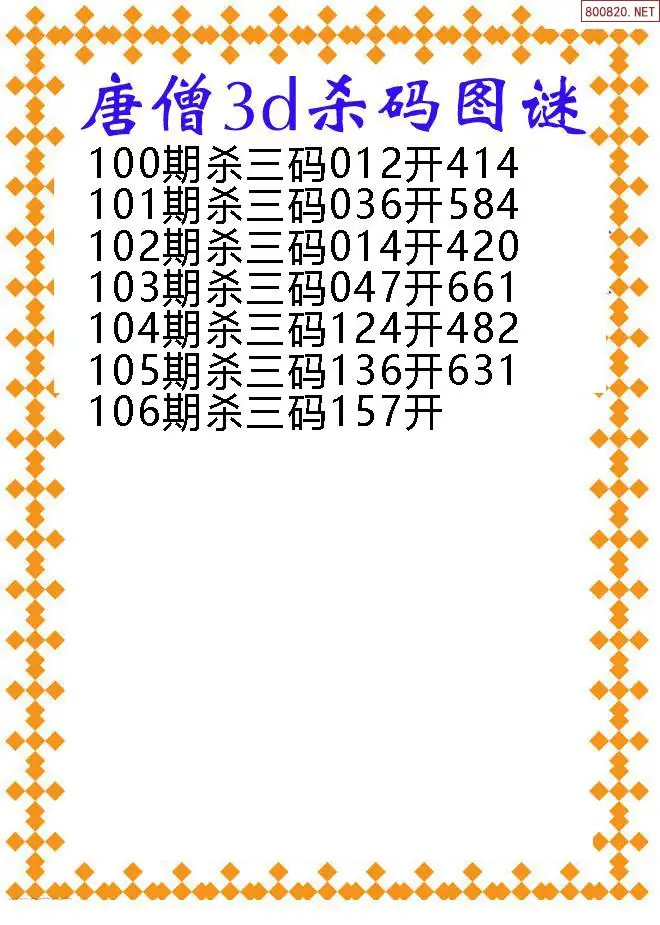 (3)2026106期3D预测总汇全图_福彩3d图谜字谜总汇