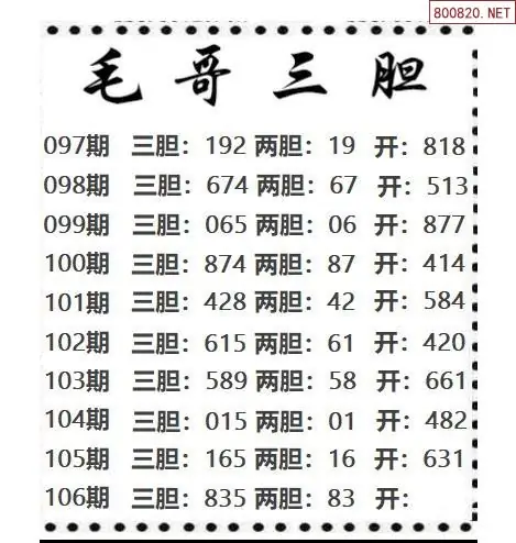 26年106期毛哥三胆3d图谜