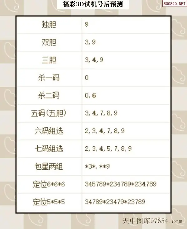 106期财神福彩3D试机号推荐
