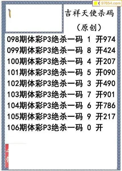 26年106期吉祥天使今日杀码图谜