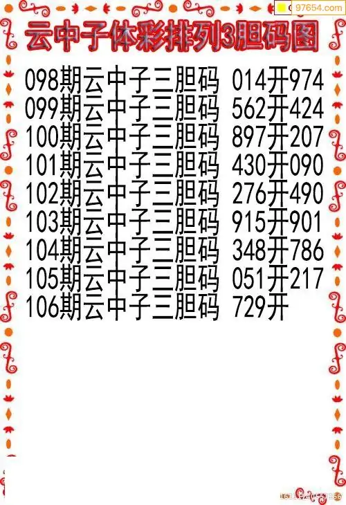 26106期云中子当天P3胆码图