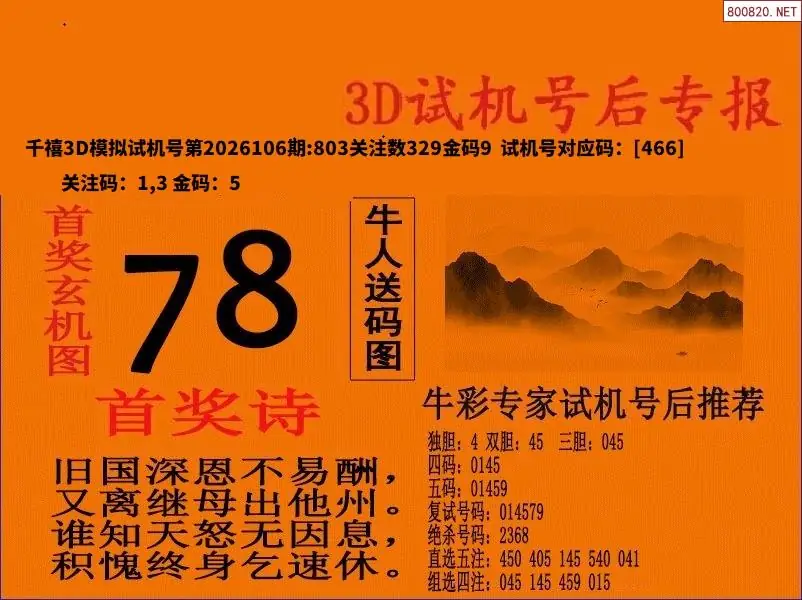 26106期福彩3D试机号后首奖诗