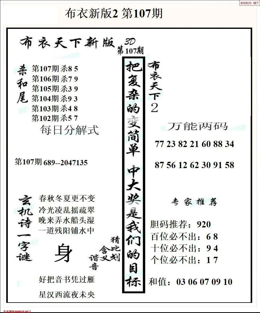 福彩107期3d真精华布衣+布衣早报(转载)