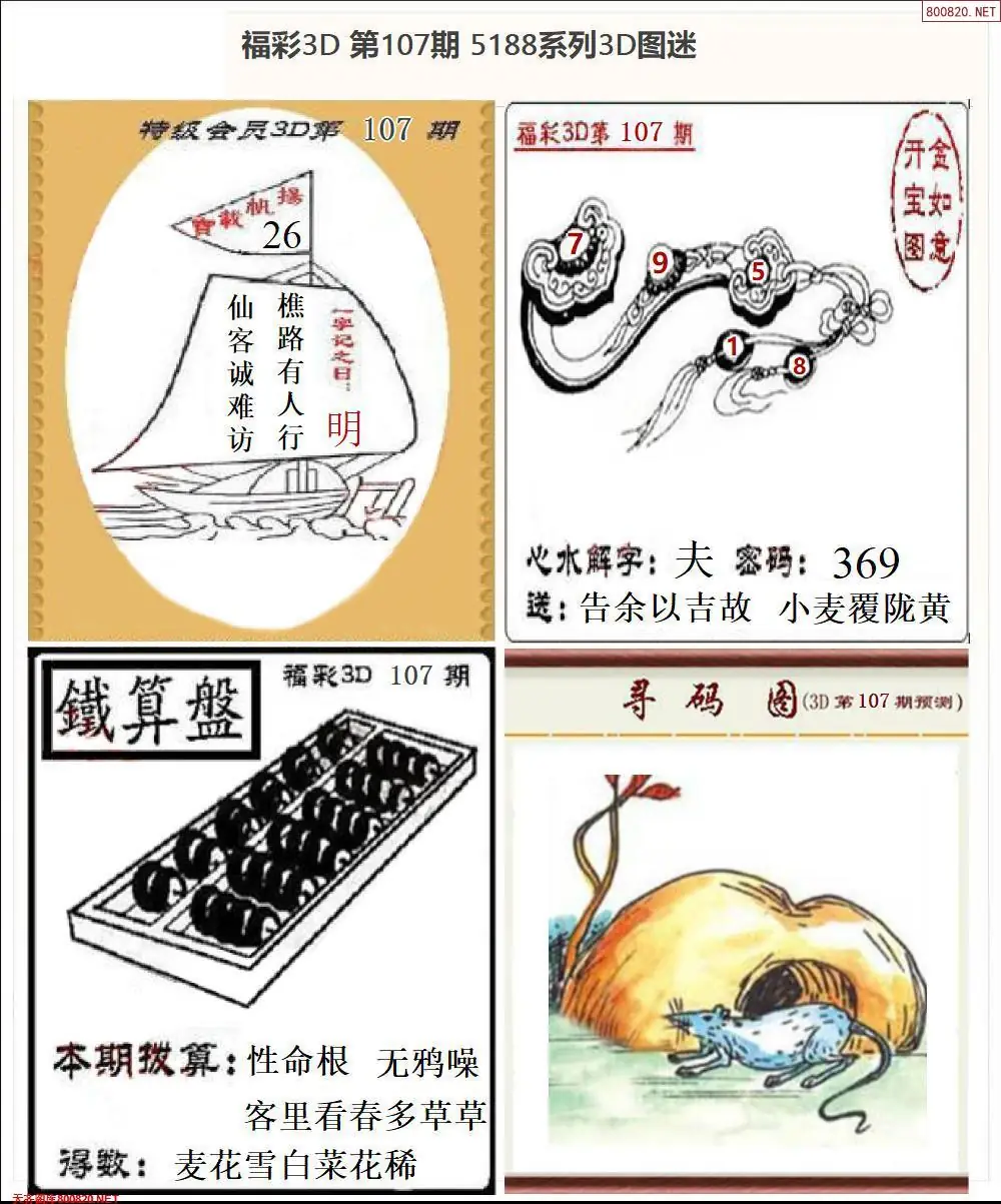 福彩3D107期天牛彩吧套图整合总汇