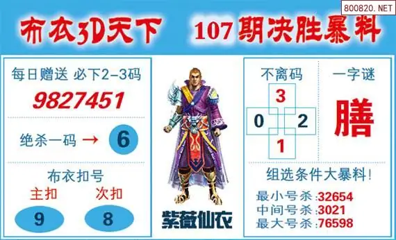 3D原创107期旺财出号推荐