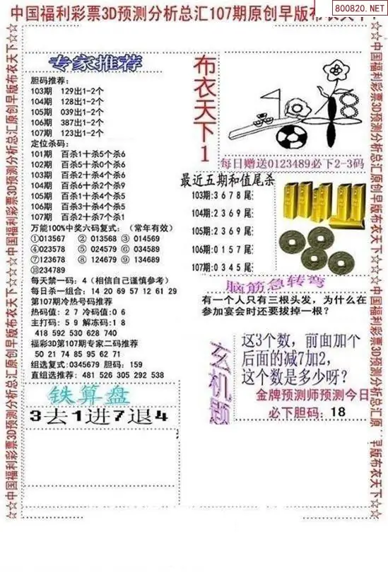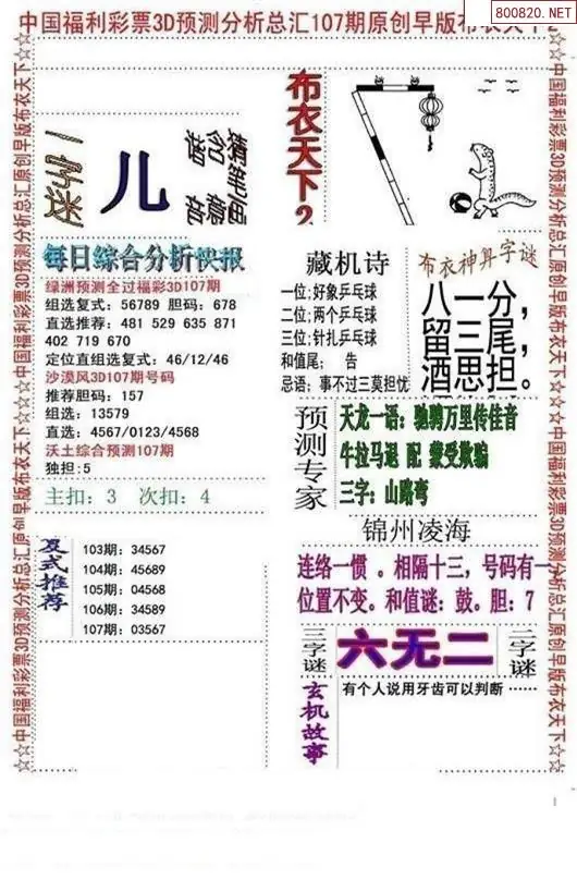福彩107期3d真精华布衣+布衣早报(转载)
