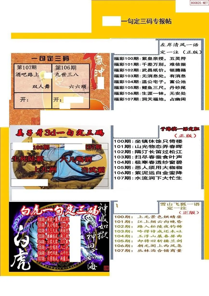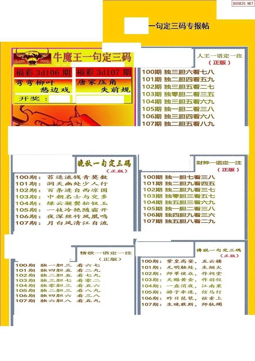 福彩3D107期天牛彩吧套图整合总汇