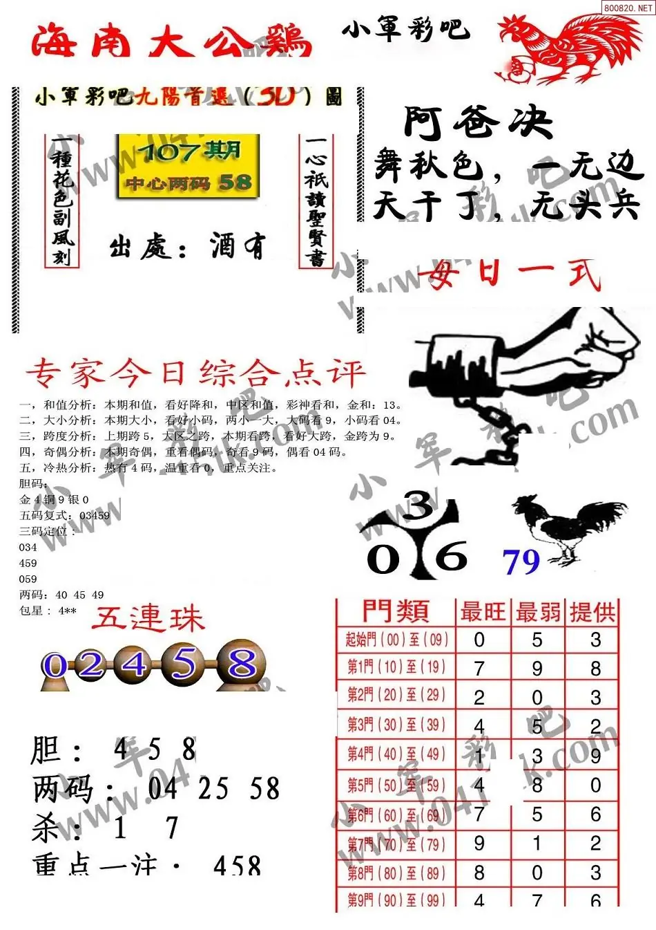 福彩3D107期天牛彩吧套图整合总汇