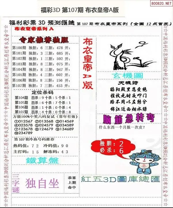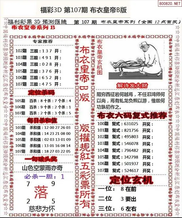 福彩107期3d真精华布衣+布衣早报(转载)