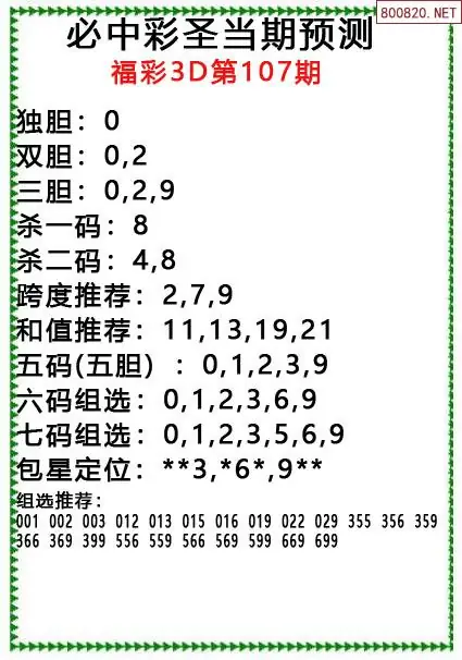 原创彩圣分析107期3D出号规律