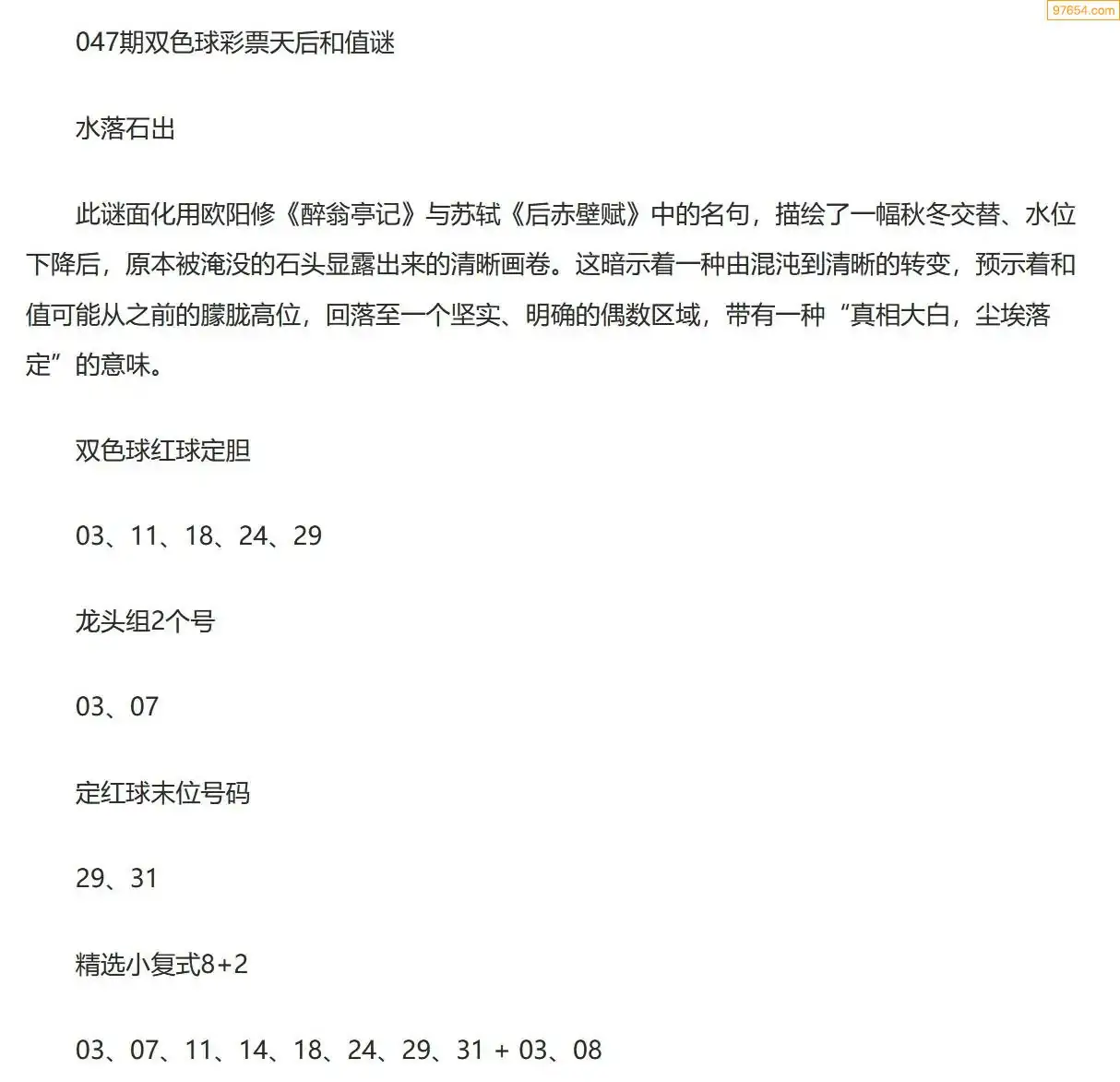 26047期双色球秋水仙子乾坤诗谜