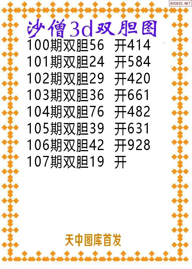 天齐网3d26年107期胆码图 胆:83