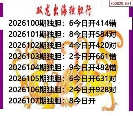 26107期双龙独胆_3D今日独胆码