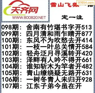 彩票3d字谜107期雪山飞狐一语定一注
