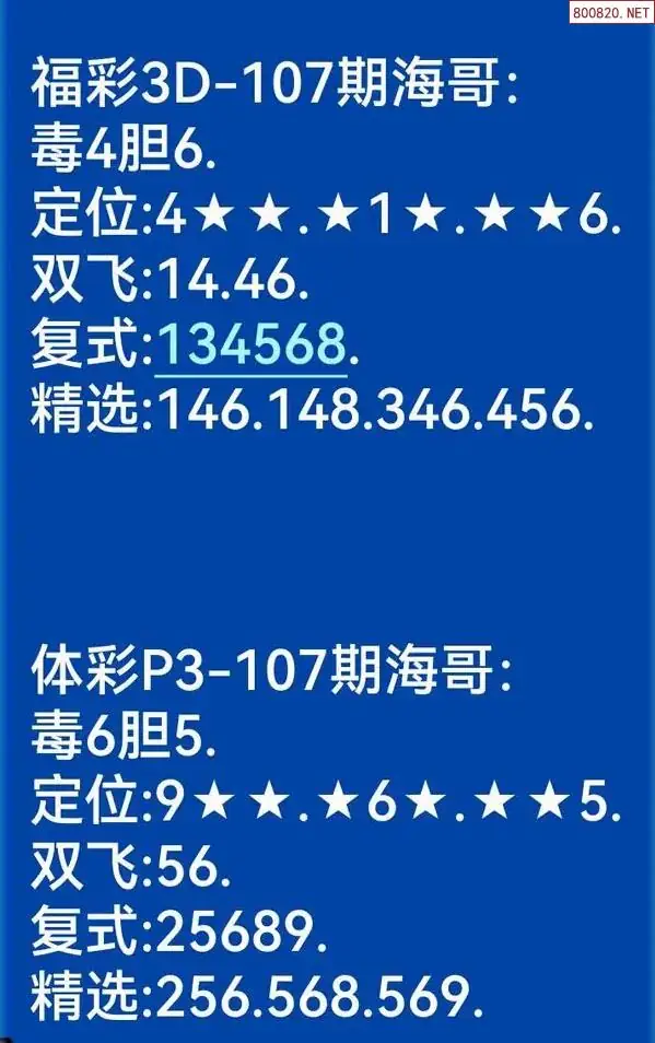 2026年107期普度众生今晚3D推荐胆码 5连中