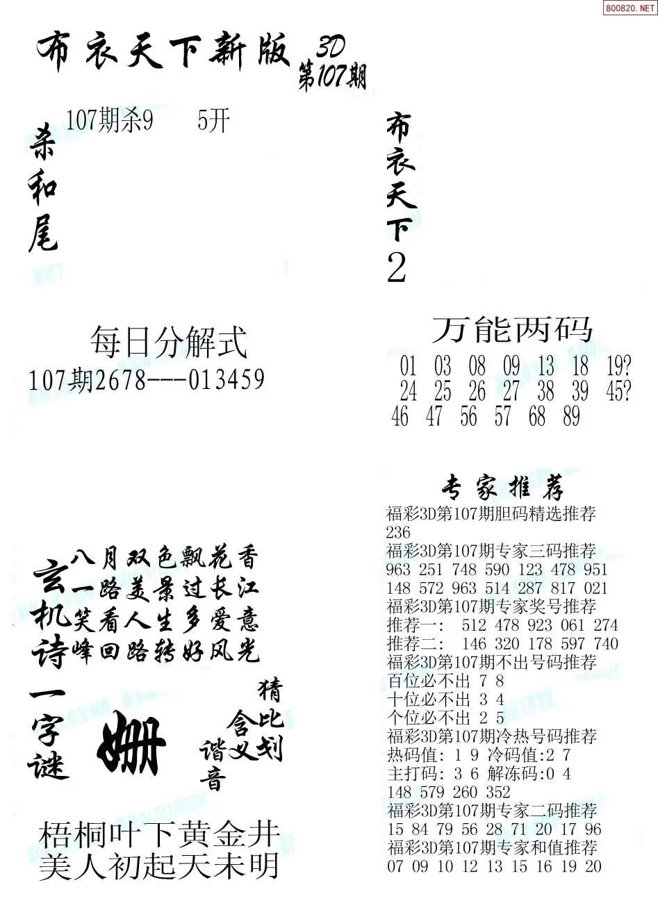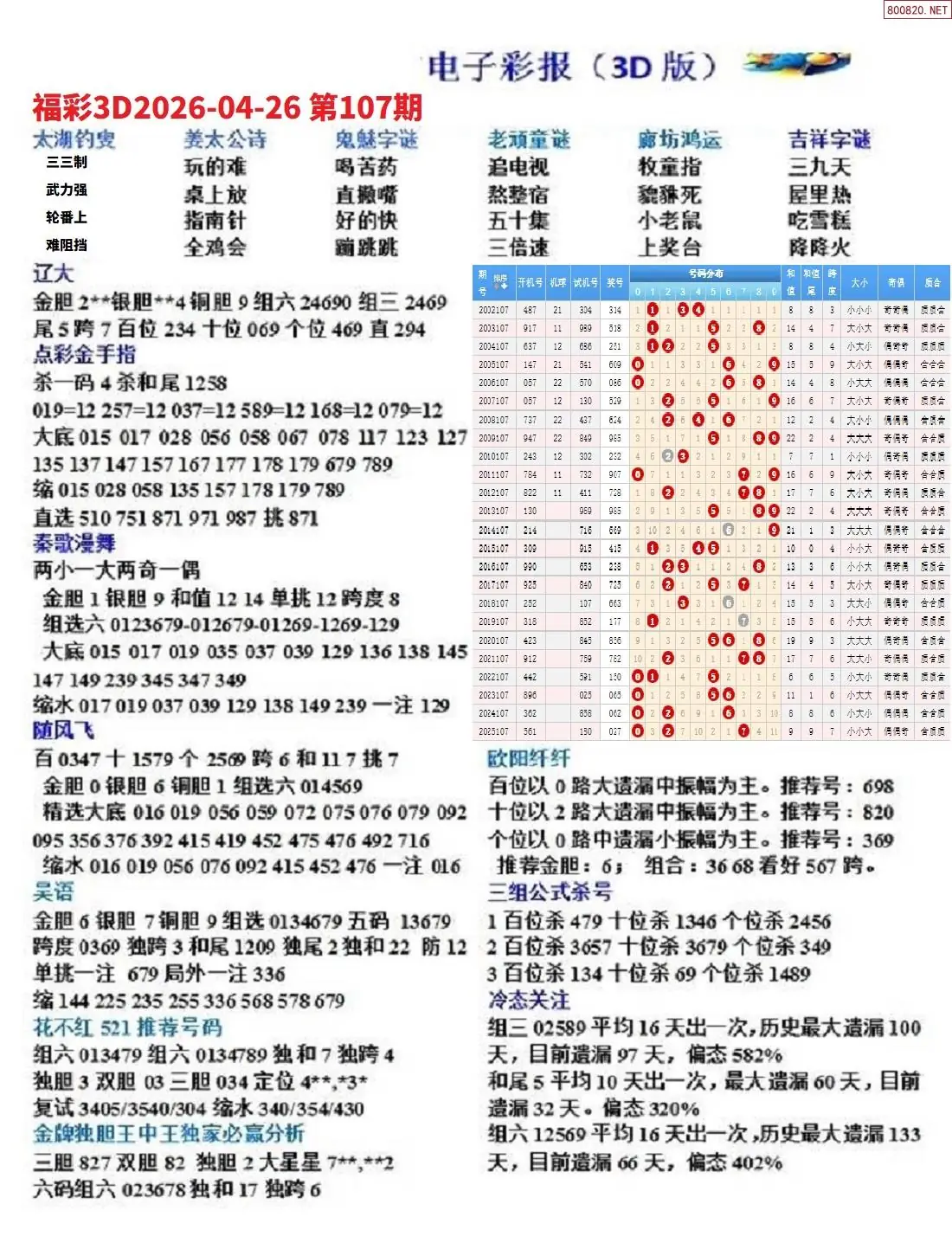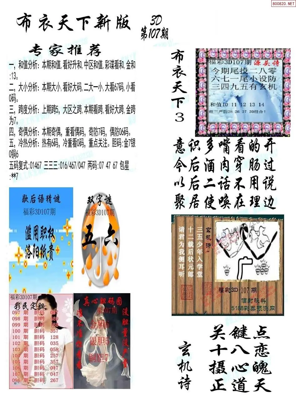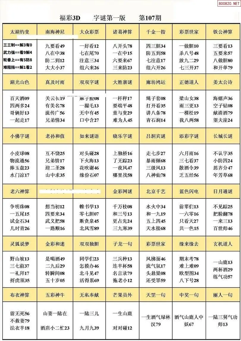 (3)2026107期3D预测总汇全图_福彩3d图谜字谜总汇