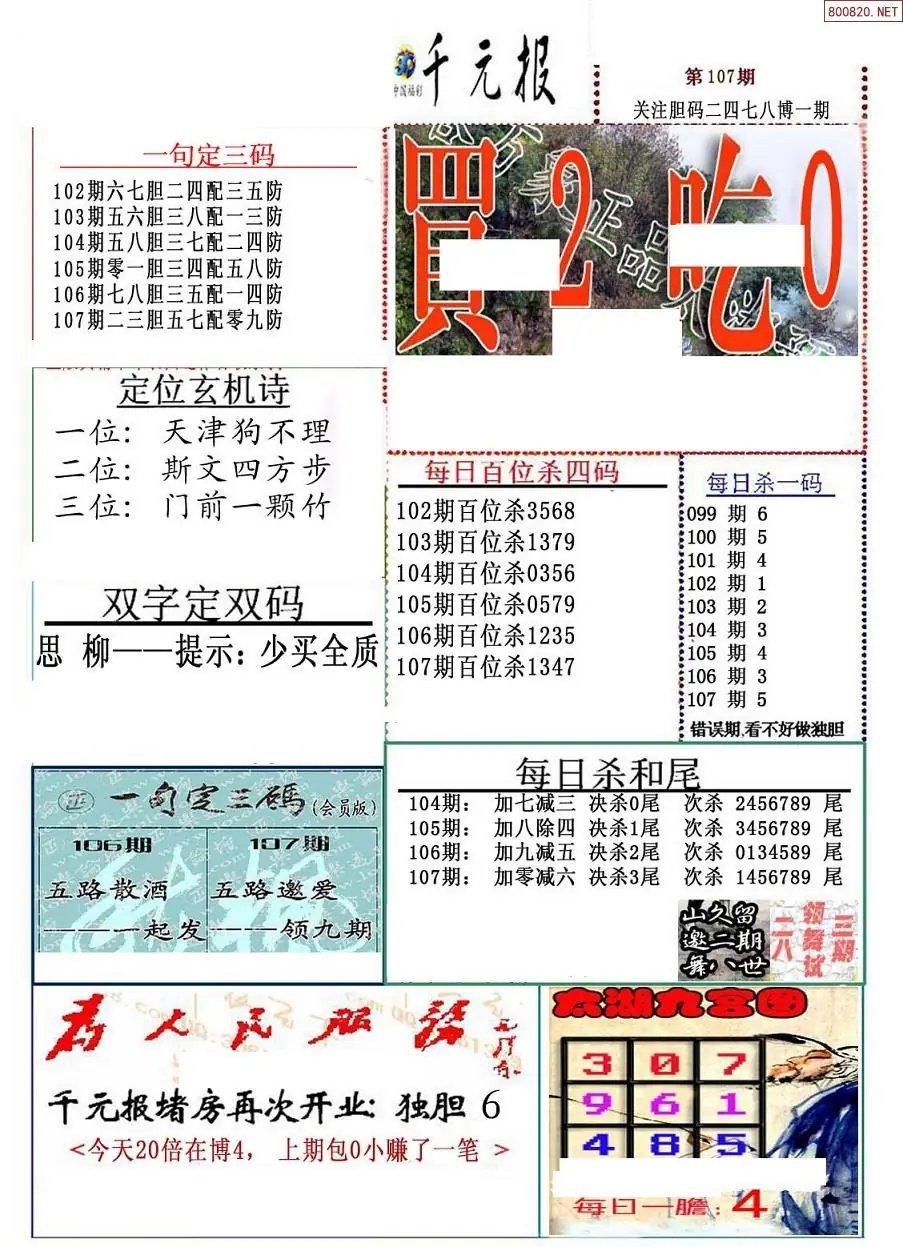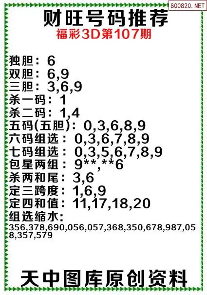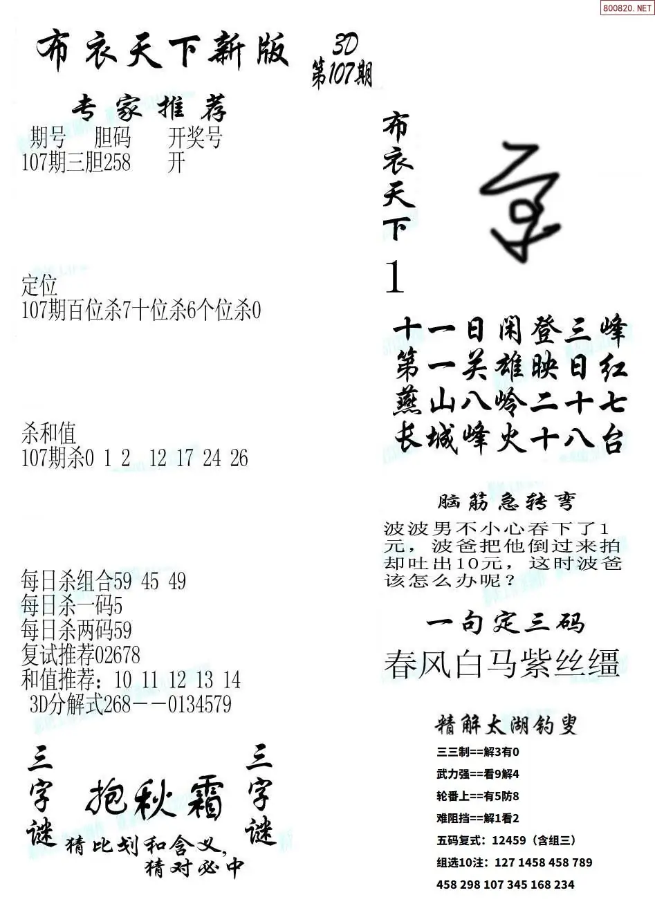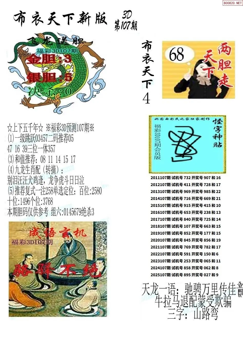 (3)2026107期3D预测总汇全图_福彩3d图谜字谜总汇