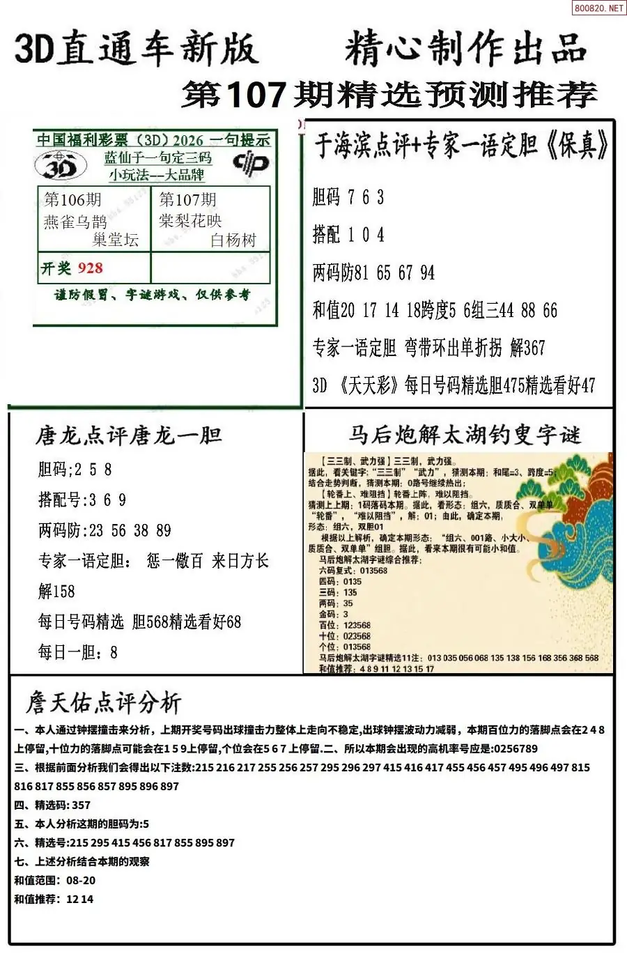 26年107期3D各板块资料整合汇总