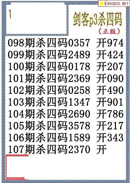 26年107期排三剑客杀码图谜