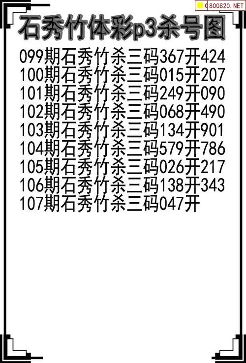 26年107期体彩p3石秀竹杀号图