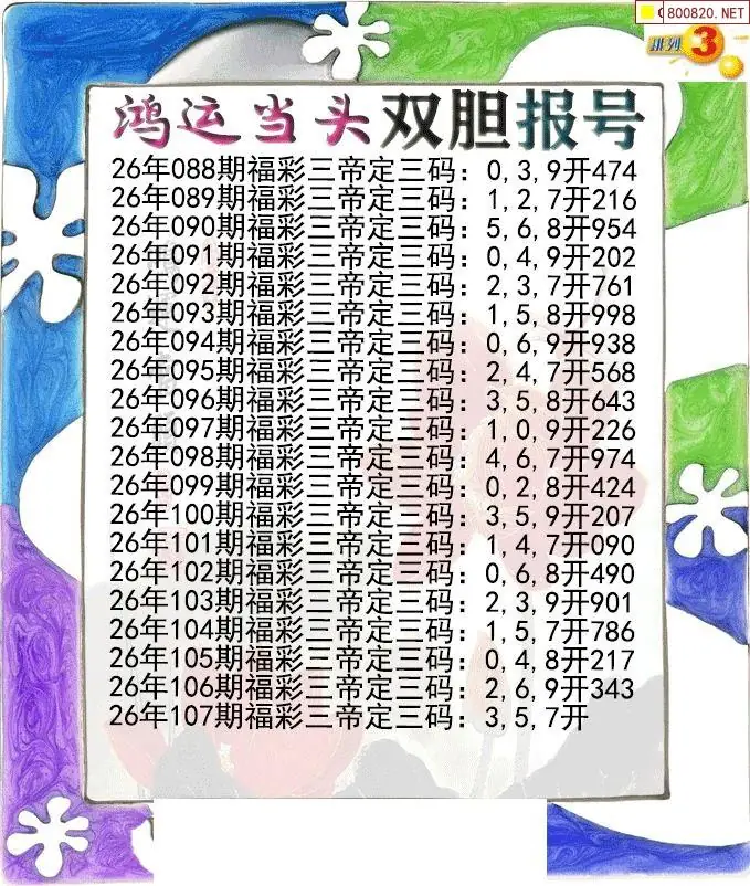 26107期鸿运当头双胆p3报号图